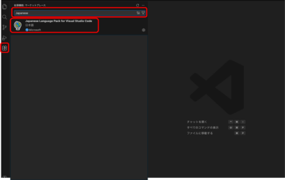- 初期状態は英語表記ですが、拡張機能の「Japanese Language Pack」を入れるだけで日本語化できます。